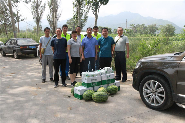 夏日炎炎送清涼,情意暖暖感人心。近日來(lái),三門(mén)峽氣溫不斷升高,項目一線(xiàn)施工人員每日頂著(zhù)炎炎烈日,堅守在自己的工作崗位上,兢兢業(yè)業(yè)。為預防高溫引發(fā)中暑,做好防暑降溫工作,確保廣大員工身體健康和生產(chǎn)安全。8月2日,三門(mén)峽市昌通路橋建設有限責任公司總經(jīng)理王軍紅帶隊領(lǐng)有關(guān)領(lǐng)導分別到國道310南移項目部及省道312項目部開(kāi)展“防暑降溫送清涼”慰問(wèn)活動(dòng),慰問(wèn)堅守在項目一線(xiàn)施工干部職工?,F場(chǎng)給項目一線(xiàn)施工人員送去了防暑降溫藥品(藿香正氣水、風(fēng)油精、人丹)、礦泉水和西瓜。為奮戰在烈日炎炎下的項目一線(xiàn)施工人員提供“綠色安全保護傘”,確保職工的身心健康。